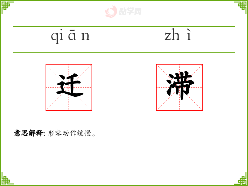 迁滞的意思是:形容动作缓慢。