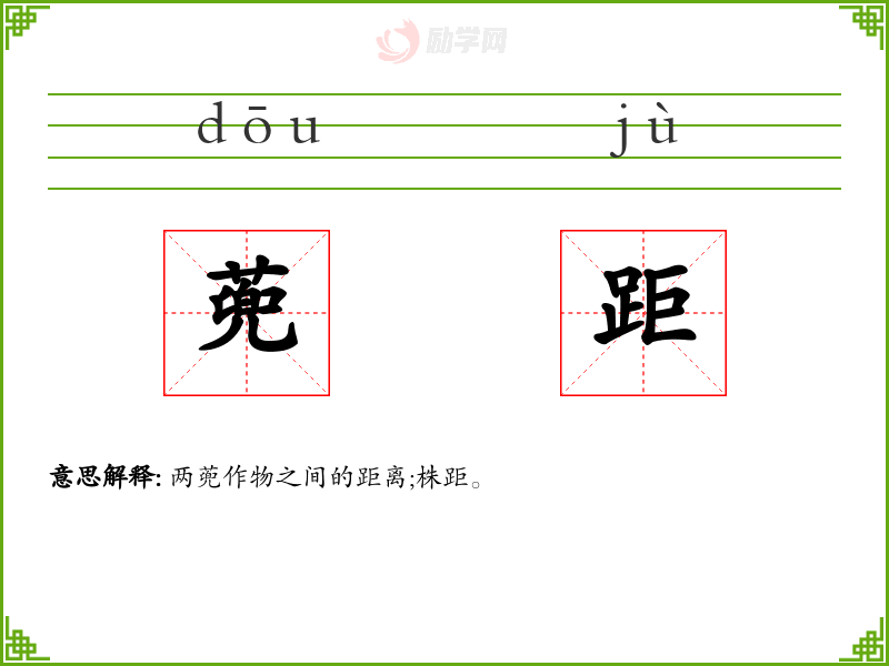 距[ jù ] 1. (形声。从足,巨声。本义:鸡爪)。 2. 同本义。 【引证】 《说文》-距,鸡距也。 《左传》-后阺为之金距。 《汉书·五行志》。注:“距,鸡附足骨,斗时所用刺之。”-不鸣不将无距。 《淮南子·原道》-虽有钩针芒距。 《仪礼·少牢礼》。注:“胫中当横节也。”-长皆及俎距。 《列子》-公输之刻凤也,冠距未成。 [更多解释]