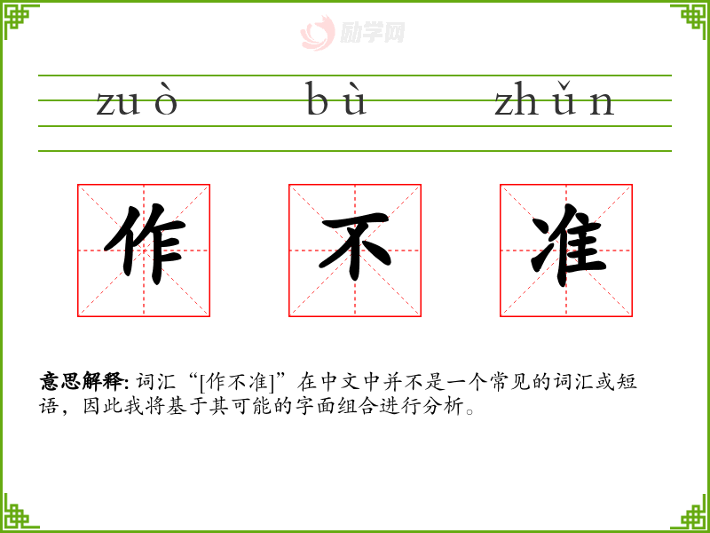 词汇“[作不准]”在中文中并不是一个常见的词汇或短语,因此我将基于其可能的字面组合进行分析。