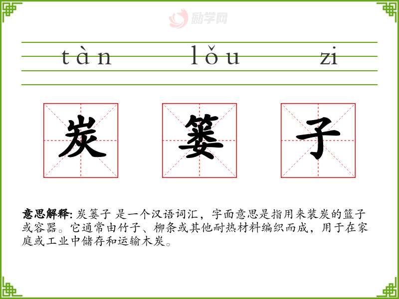 1.炭篓子的拼音是什么?炭篓子怎么读?
