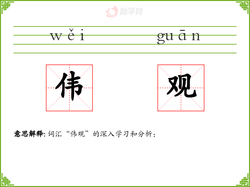 结合图片,如一张壮丽的山脉照片,或一段激昂的音乐,可以增强“伟观”一词带来的视觉和听觉体验。