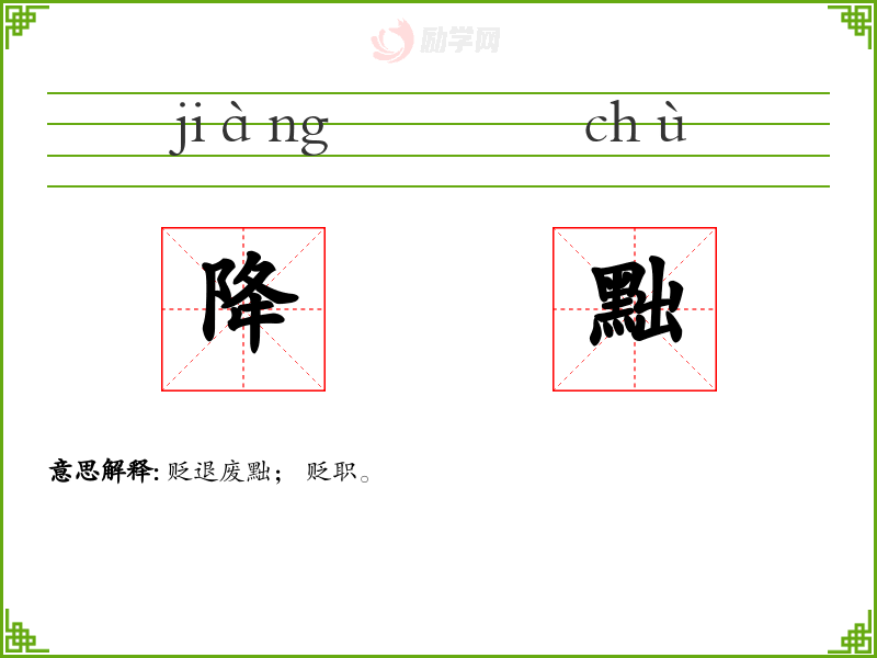 《左传·哀公二十六年》。注:“和同也。”-六卿三族,降听政也。 《左传·隐公十一年》。注:“降,降心也。”-其能降以相从也。 唐·杜甫《秦州杂诗二十首》-降虏兼千帐,居人有万家。 《西游记》-[太公]又与了我五钱银子做盘缠,教我再去请好法师降他。