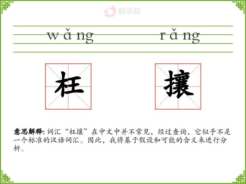 词汇“枉攘”在中文中并不常见,经过查询,它似乎不是一个标准的汉语词汇。因此,我将基于假设和可能的含义来进行分析。
