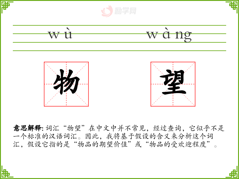 - 专业领域:在经济学或市场营销中,“物望”可能指消费者对某产品的期望或需求。