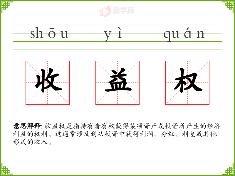 1.收益权的拼音是什么?收益权怎么读?