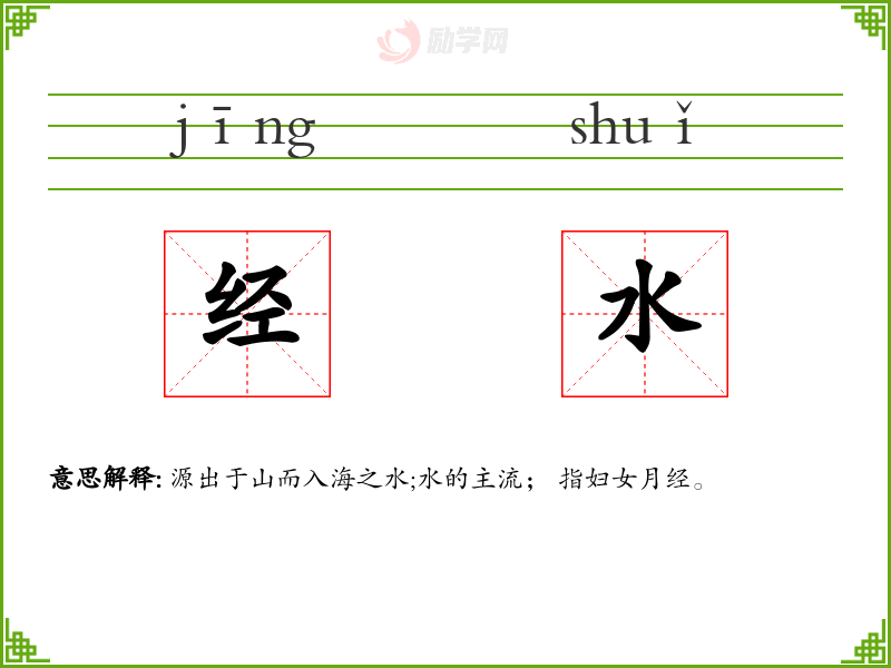 经水的意思是:源出于山而入海之水;水的主流; 指妇女月经。