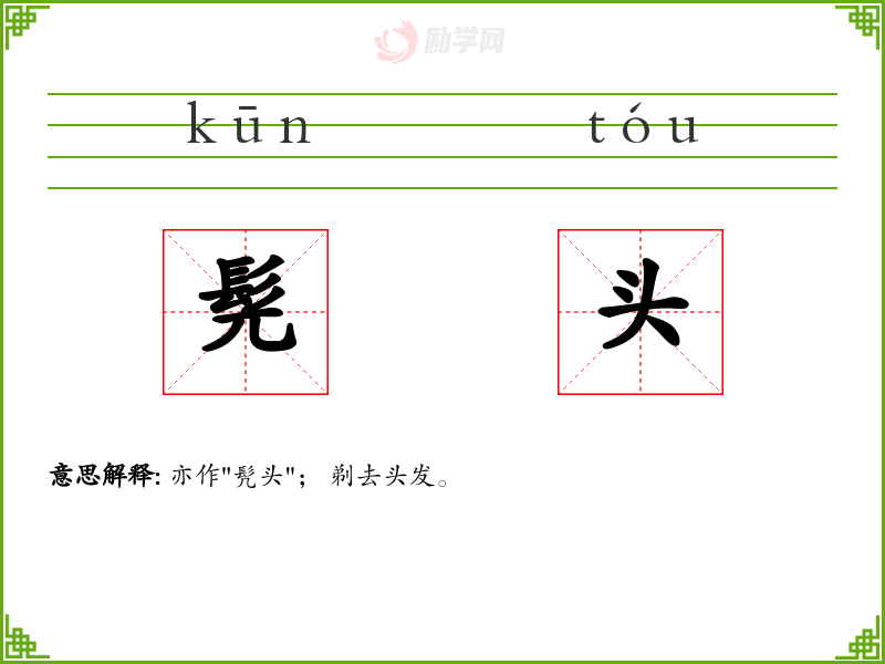 髡头的意思是:亦作"髠头"; 剃去头发。