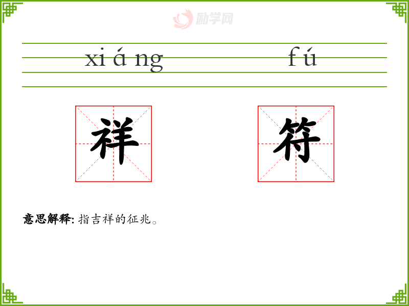(形声。从示,羊声。本义:凶吉的预兆,预先显露出来的迹象)。