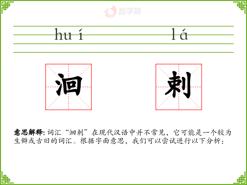 词汇“洄刺”在现代汉语中并不常见,它可能是一个较为生僻或古旧的词汇。根据字面意思,我们可以尝试进行以下分析: