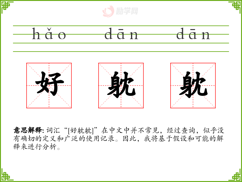 词汇“[好躭躭]”在中文中并不常见,经过查询,似乎没有确切的定义和广泛的使用记录。因此,我将基于假设和可能的解释来进行分析。