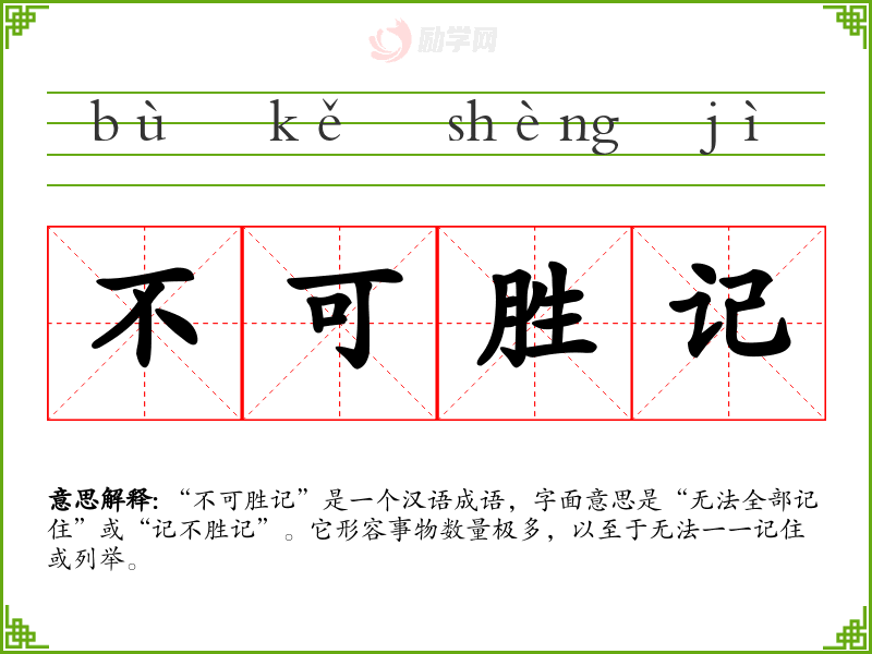 1.不可胜记的拼音是什么?不可胜记怎么读?