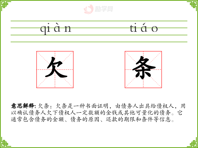 1.欠条的拼音是什么?欠条怎么读?