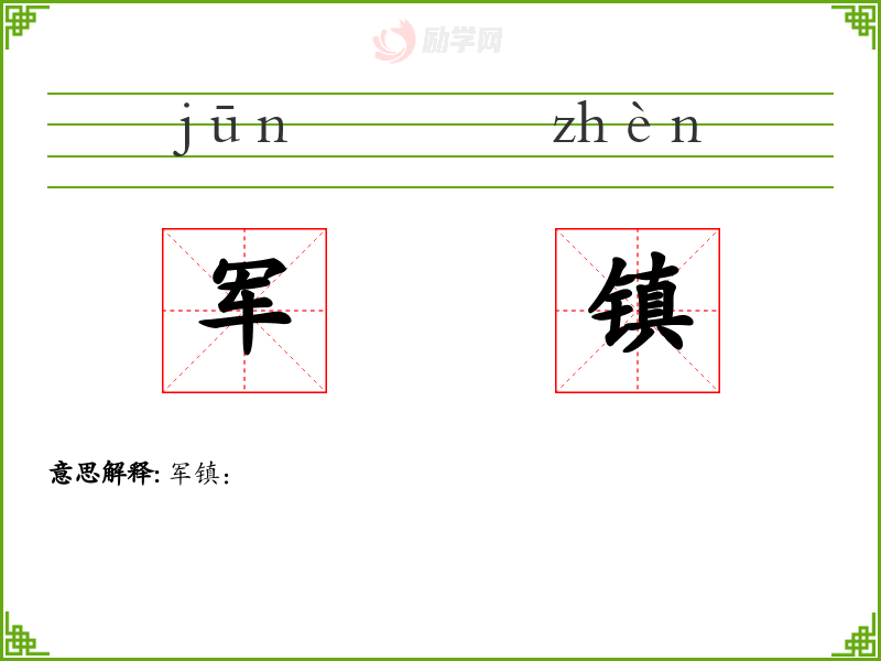 - 理解:通过对“军镇”的深入学*,我更加理解了它在历史和文化中的重要性,以及它在现代语言中的应用。