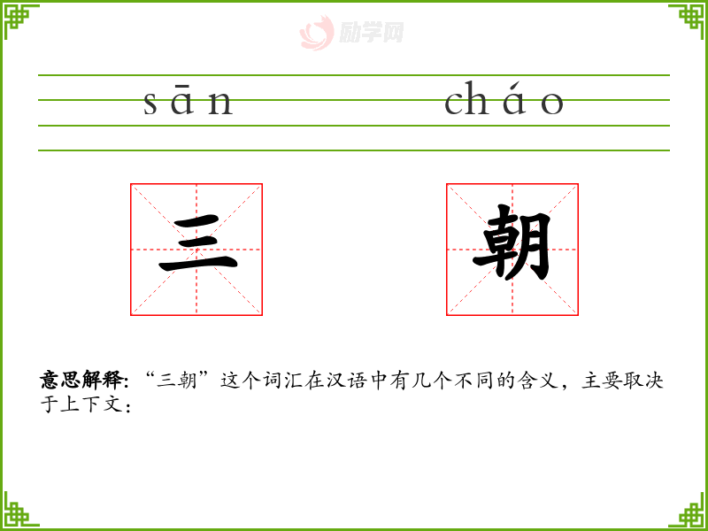 1.三朝的拼音是什么?三朝怎么读?