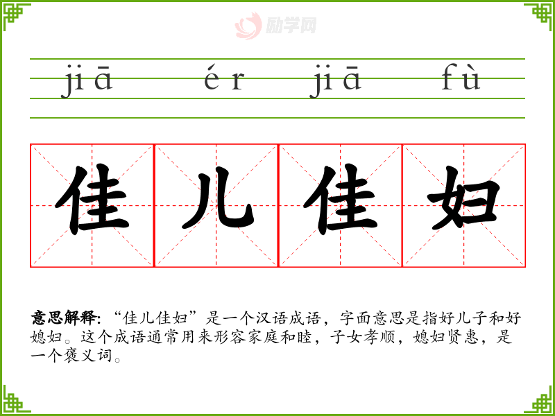 1.佳儿佳妇的拼音是什么?佳儿佳妇怎么读?