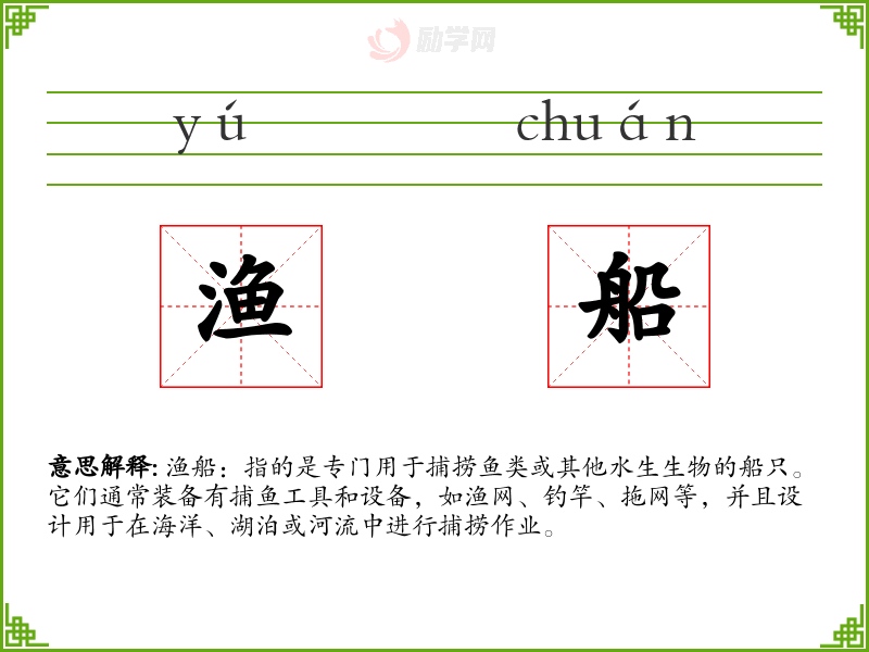 1.渔船的拼音是什么?渔船怎么读?