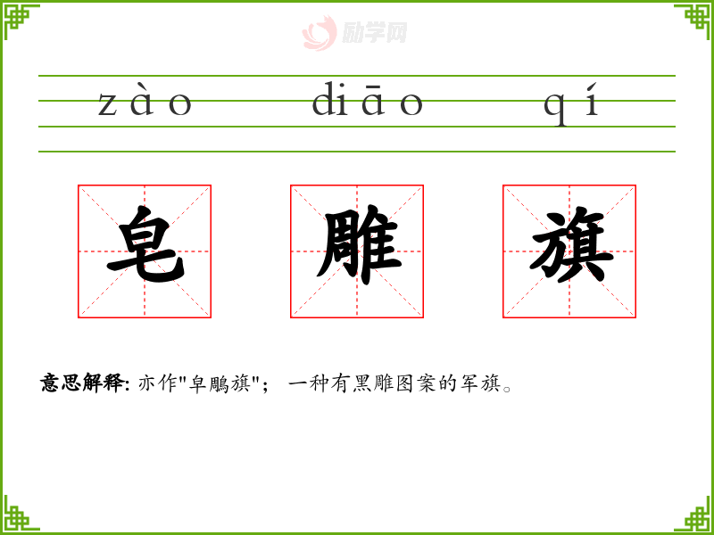 1.皂雕旗的拼音是什么?皂雕旗怎么读?