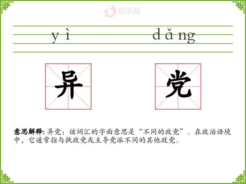 1.异党的拼音是什么?异党怎么读?