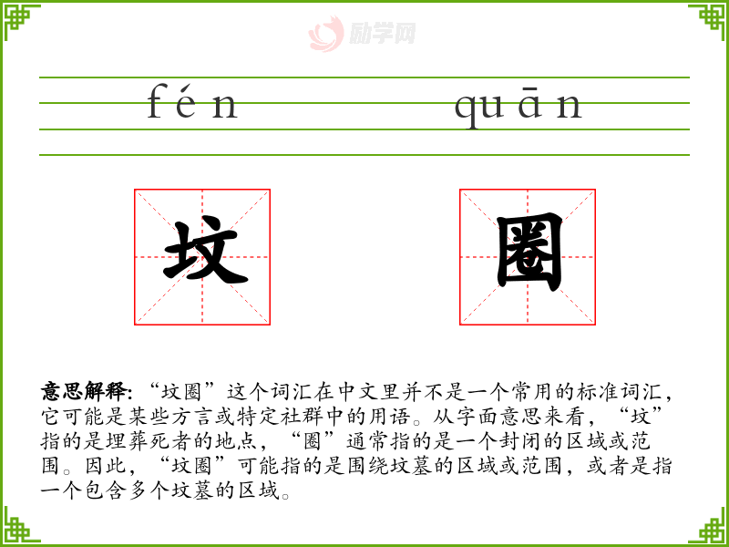 1.坟圈的拼音是什么?坟圈怎么读?