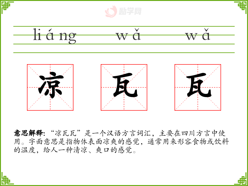 1.凉瓦瓦的拼音是什么?凉瓦瓦怎么读?