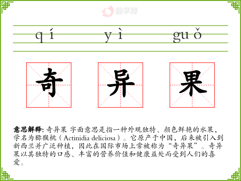 - 文学:在文学作品中,奇异果可能被用作象征或隐喻,代表新鲜、独特或异国情调。