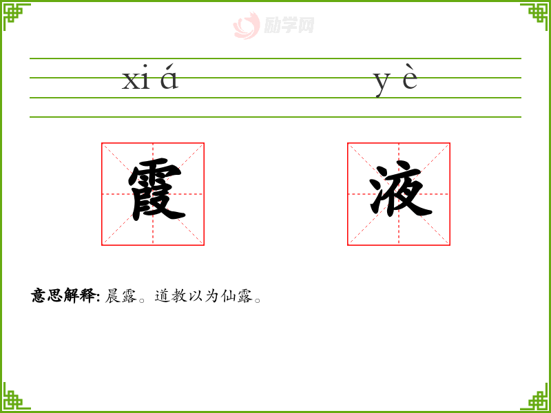 《字林》-液,汁也。 《素问·调经论》。注:“精之渗于空窍,留而不行者为液也。”-人有精气津液。 《素问·腹中论》-鼻出清液。 《楚辞》-观炎气之相仍兮,窥烟液之所积。 唐·李白《古风》-尚恐丹液迟,志愿不及申。