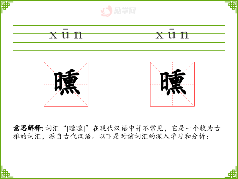 词汇“[曛曛]”在现代汉语中并不常见,它是一个较为古雅的词汇,源自古代汉语。以下是对该词汇的深入学*和分析: