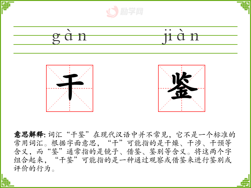 由于“干鉴”不是一个标准词汇,我们只能根据字面意思进行推测: