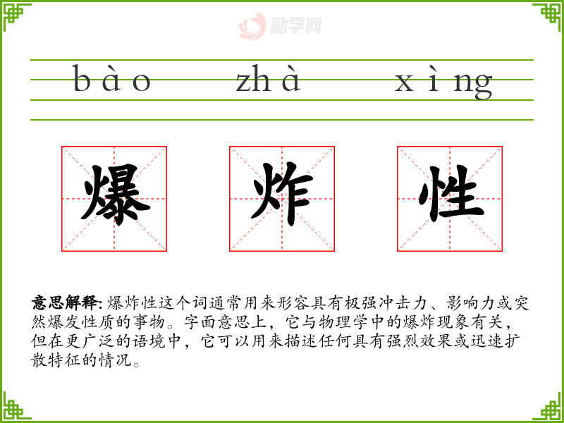 1.爆炸性的拼音是什么?爆炸性怎么读?