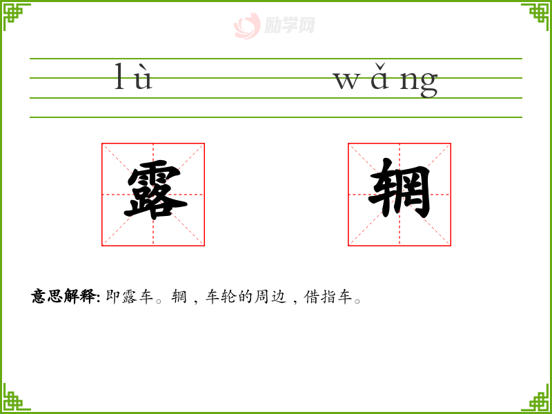 露辋的意思是:即露车。辋﹐车轮的周边﹐借指车。