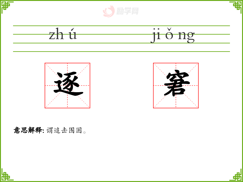 逐逐、 逐驾、 逐胜、 逐射、 逐利、 逐兔
