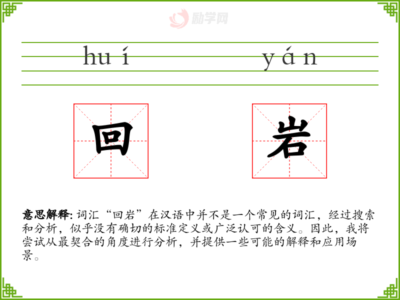 由于“回岩”不是一个标准词汇,个人应用可能非常有限。