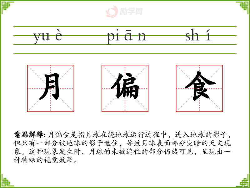1.月偏食的拼音是什么?月偏食怎么读?