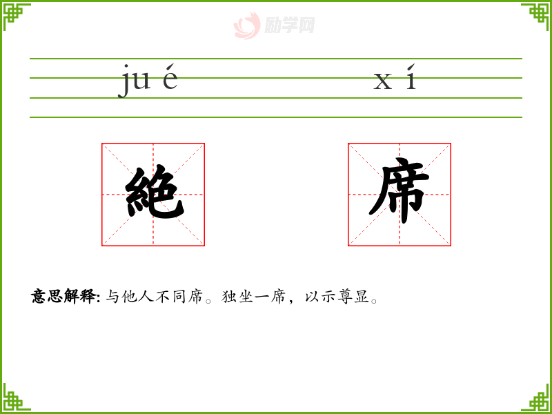絶席的意思是:与他人不同席。独坐一席,以示尊显。