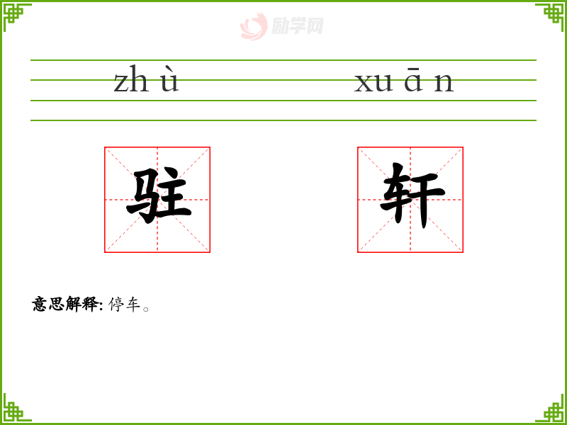 的分字组词驻轩