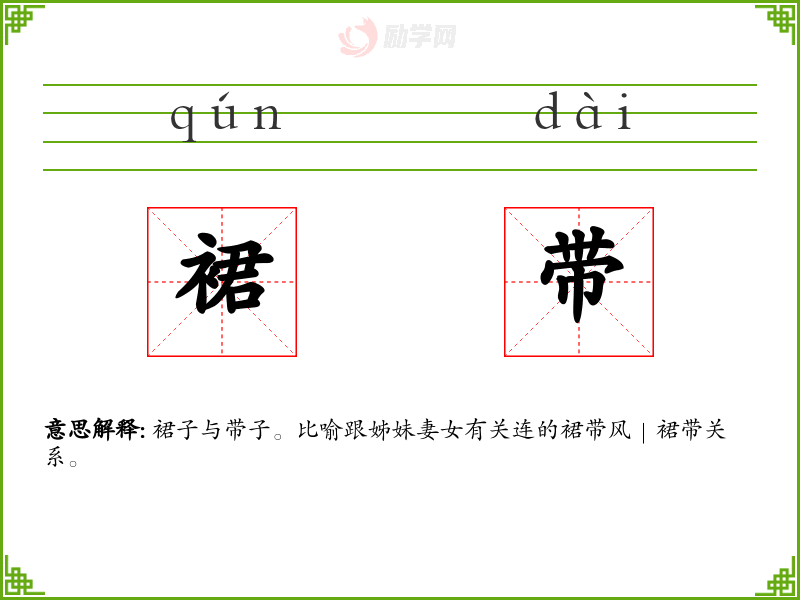 裙带的意思是:裙子与带子。比喻跟姊妹妻女有关连的裙带风|裙带关系。