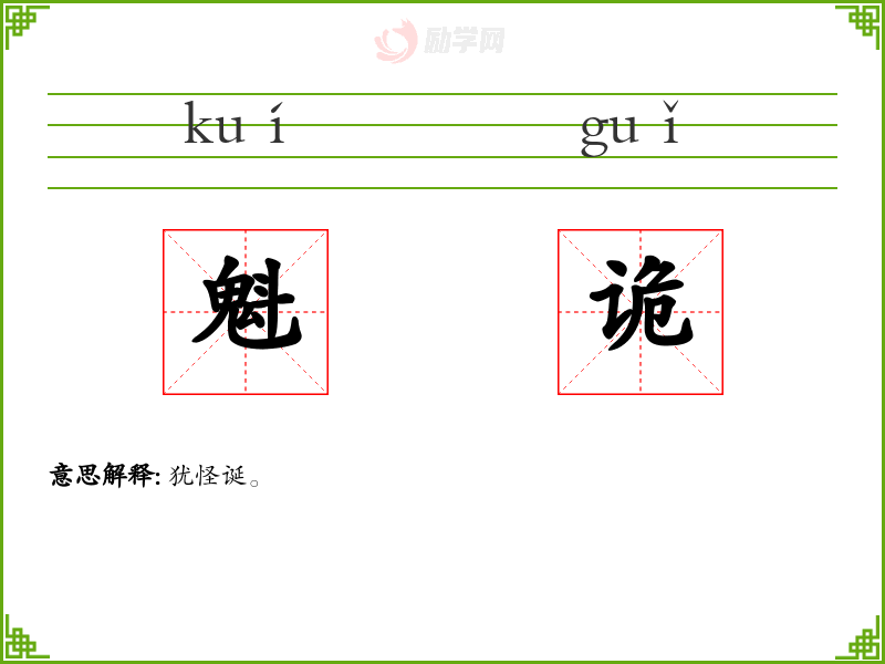 魁诡的意思是:犹怪诞。
