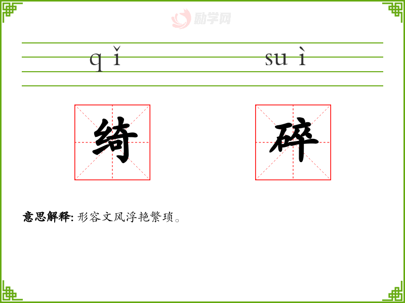 绮碎的意思是:形容文风浮艳繁琐。
