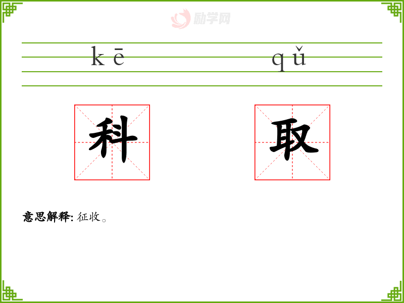 科取的意思是:征收。