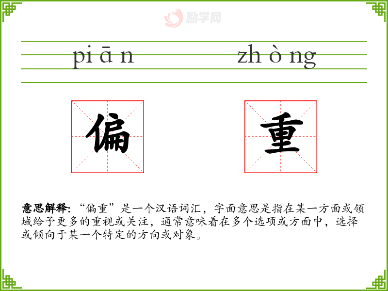 “偏重”是一个汉语词汇,字面意思是指在某一方面或领域给予更多的重视或关注,通常意味着在多个选项或方面中,选择或倾向于某一个特定的方向或对象。