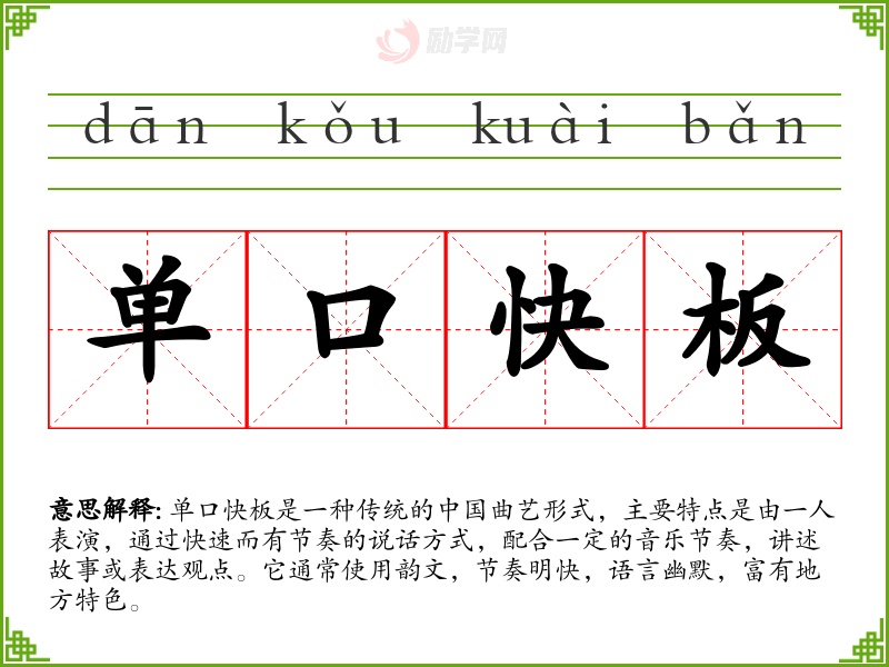 1.单口快板的拼音是什么?单口快板怎么读?