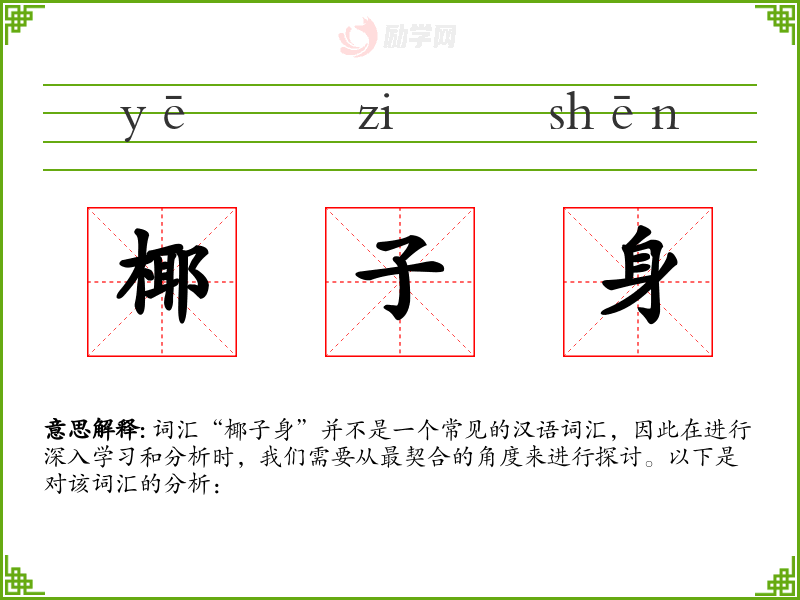 1.椰子身的拼音是什么?椰子身怎么读?