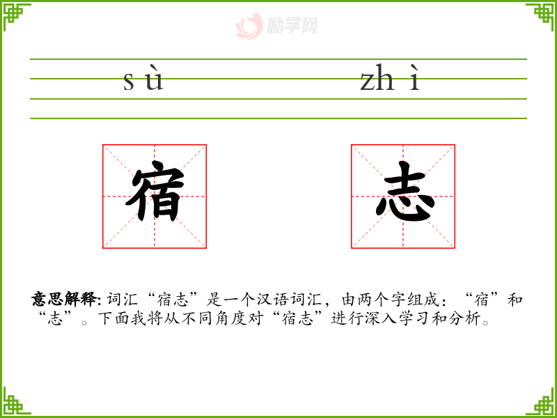 - 专业领域:在心理学或个人发展领域,“宿志”可以指个人长期的心理动机或目标。