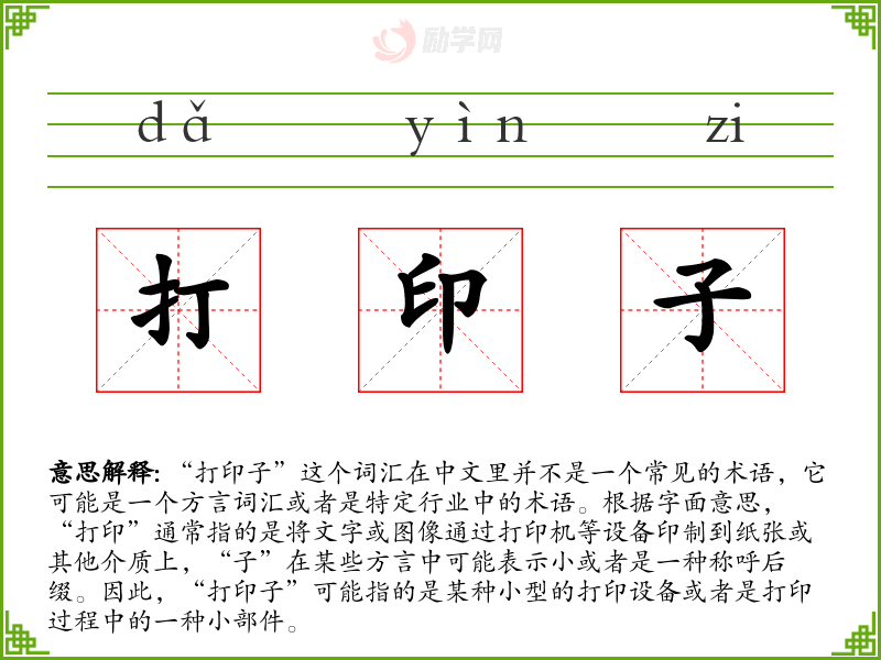 1.打印子的拼音是什么?打印子怎么读?