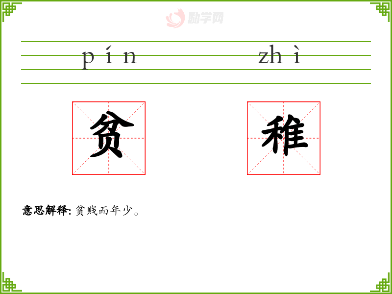 贫稚的意思是:贫贱而年少。