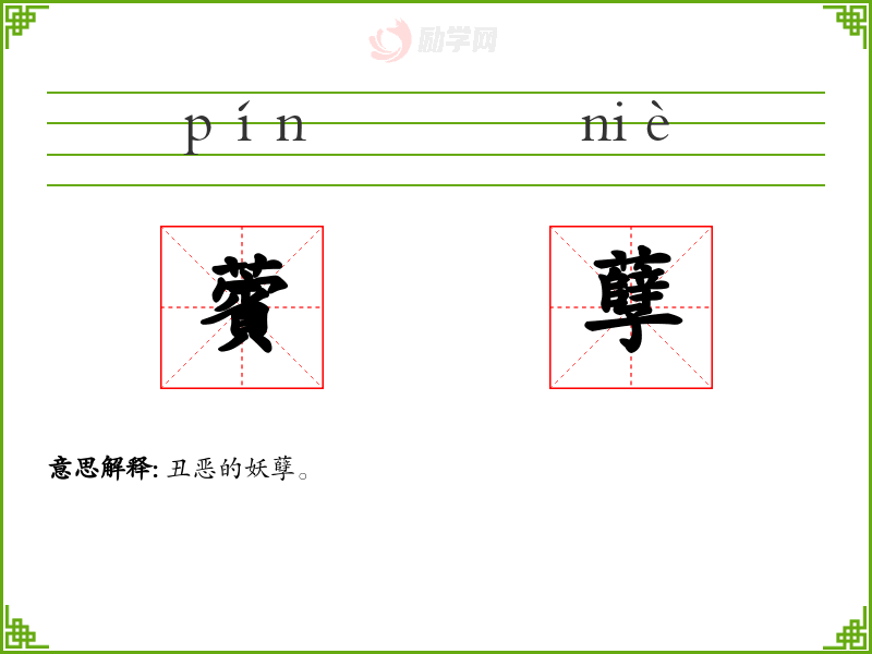 孽[ niè ] 1. (形声。从子,薛声。从子,与子孙有关。本义:庶出的,宗法制度下指家庭的旁支)。 2. 同本义。 【引证】 《说文》。段注:“凡木萌旁出皆曰蘖,人之支子曰孽,其义略同。”-孽,庶子也。 《史记·商君书》-商君者,魏之庶孽公子也。 《孟子·尽心上》-独孤臣孽子(孤立之臣,庶出之子),其操心也危,其虑患也深,故达(通达事理)。 【组词】 孽长子,孽子、 孽出、 孽孙、 孽庶 [更多解释]