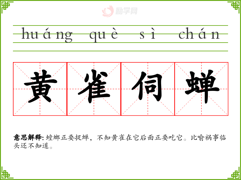 1.黄雀伺蝉的拼音是什么?黄雀伺蝉怎么读?