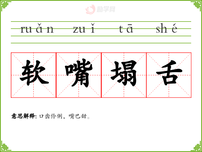 1.软嘴塌舌的拼音是什么?软嘴塌舌怎么读?