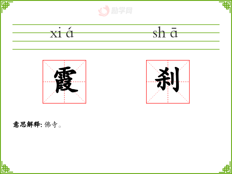霞刹的意思是:佛寺。