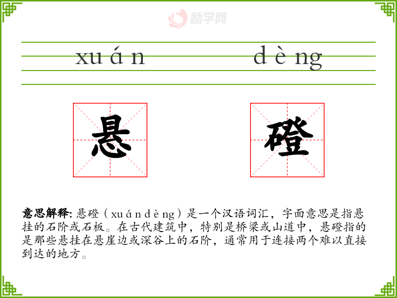1.悬磴的拼音是什么?悬磴怎么读?